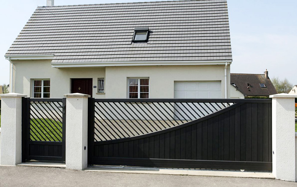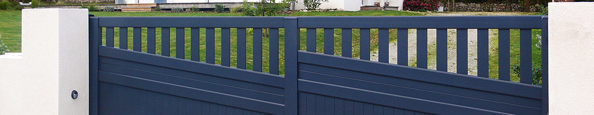 autorise toutes les formes de traverses : chapeau de gendarme, cintrée ou droite, et permet tous les types de remplissage. Il se pose avec reprise de l’existant ou par adjonction d’un poteau en aluminium assorti au portail. Il se monte sur pivots, paumelles ou gonds et est motorisable.