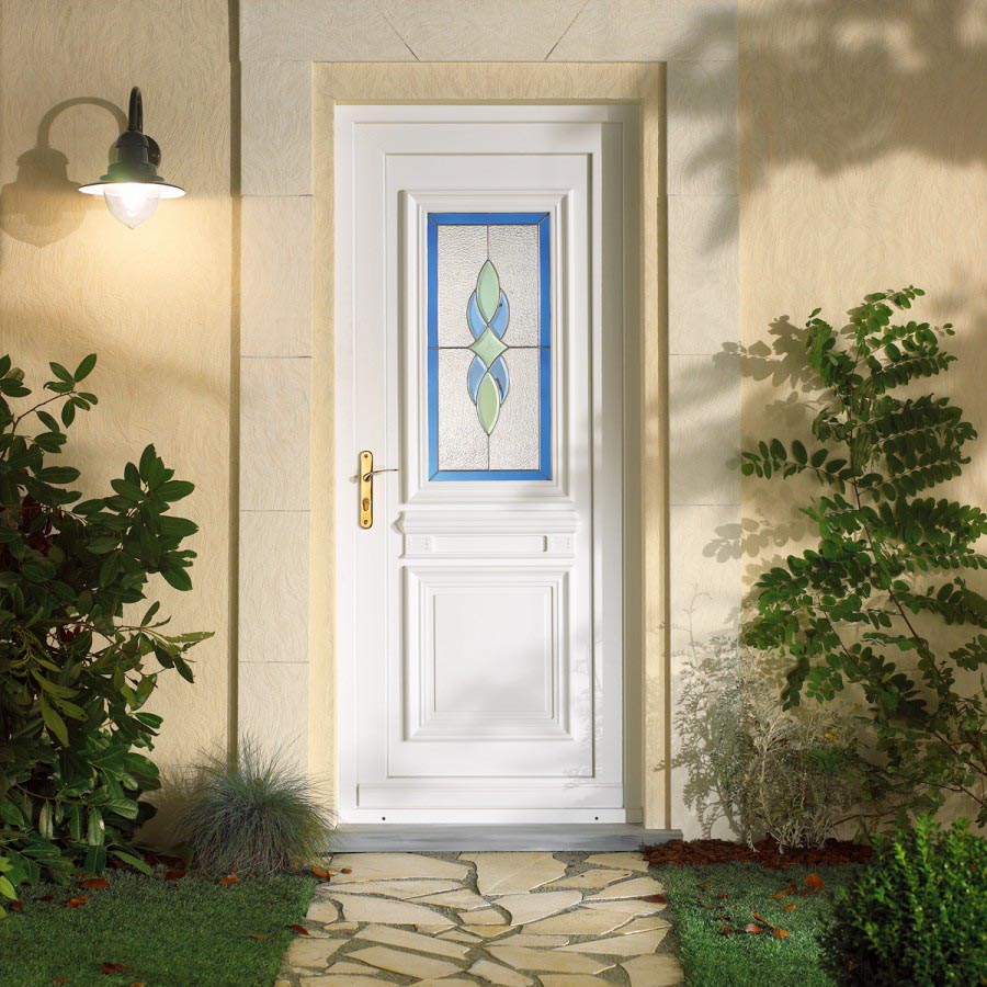 Le mariage de ce matériaux avec des vitrages colorés feront de votre porte PVC une entrée à votre image.